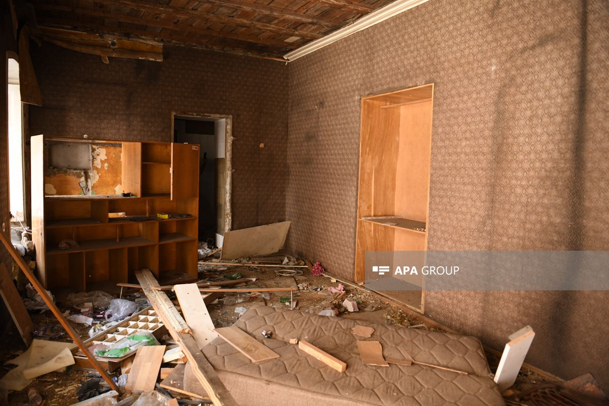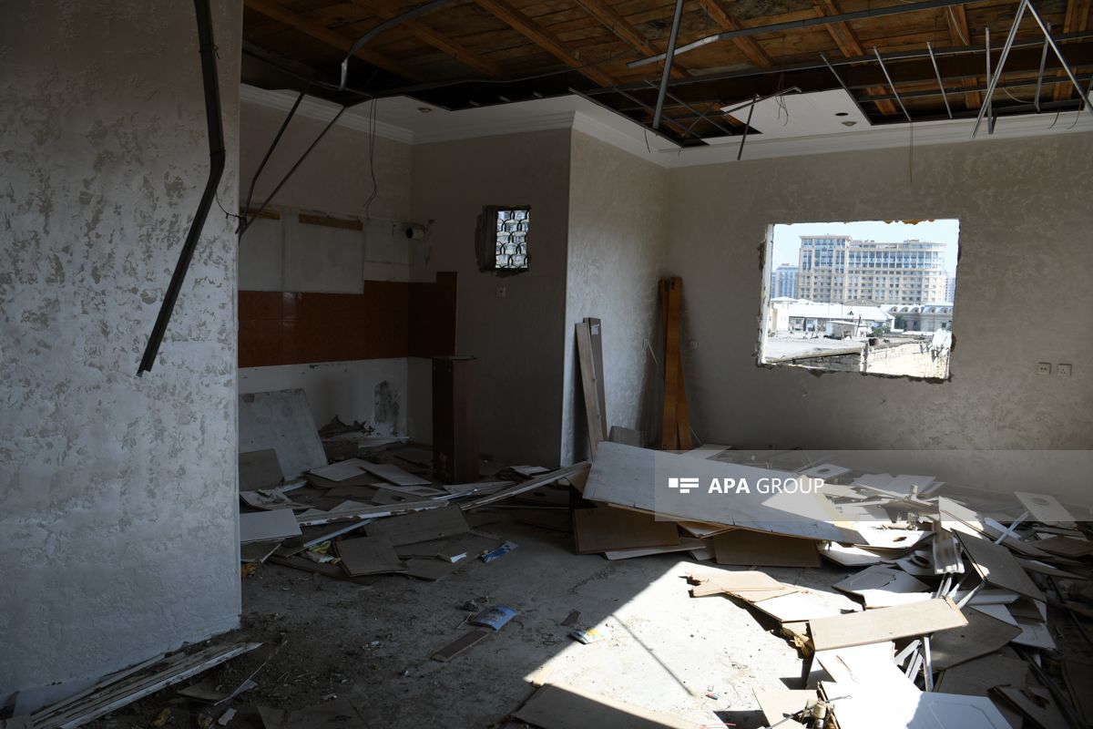Binanın birinci və ikinci mərtəbələri tamamilə sökülüb, yalnız üçüncü mərtəbə və onunla bitişik bir neçə yaşayış sahəsi qalıb. Sökülmüş evlə sakinlər yaşayan ərazini birləşdirən qapını söküblər, lakin sakinlərin şikayətindən sonra araya qapı əvəzi paltar şkafı qoyublar. Şkafı asanlıqla kənara çəkib həyətə daxil olmaq mümkündür.