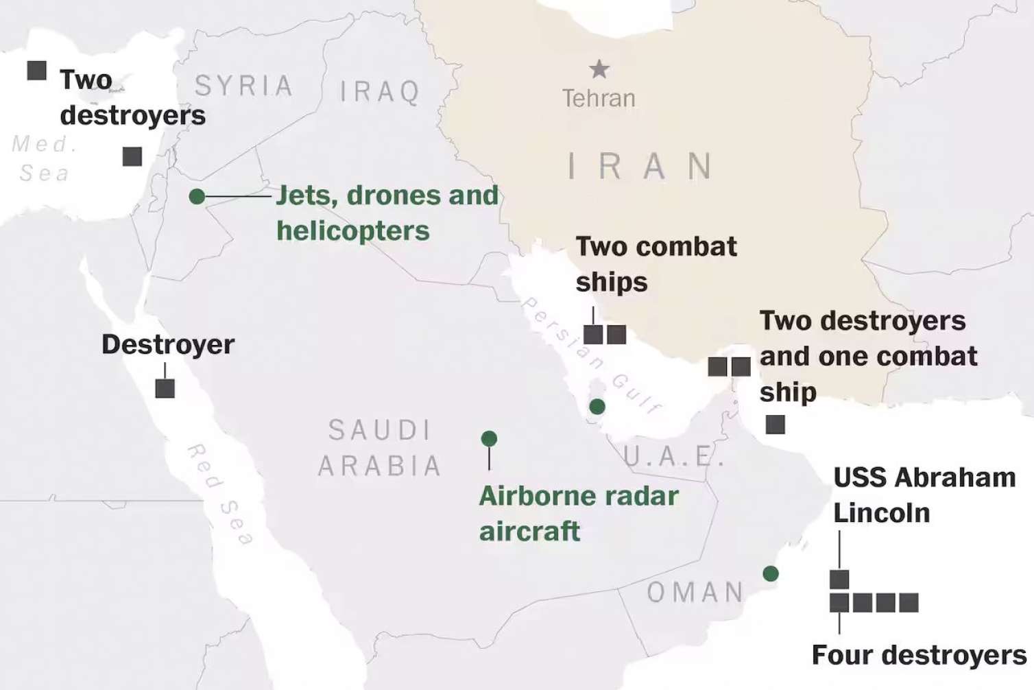 Bakupost.az “The Washington Post”a istinadən xəbər verir ki, Pentaqon Yaxın Şərqdə böyük hərbi zərbə qüvvəsi yığıb və bu qüvvənin formalaşması artıq tamamlanmaq üzrədir.