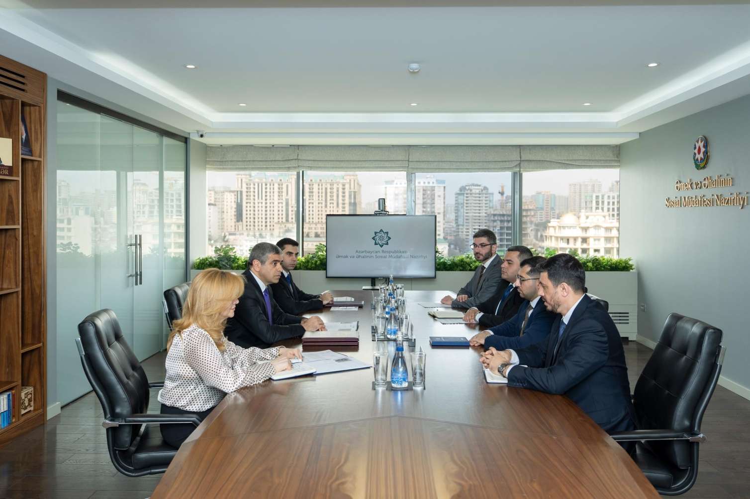 Əmək və əhalinin sosial müdafiəsi naziri Anar Əliyev Nazirlikdə Mentorluq Proqramını uğurla başa çatdıran dördüncü “Yüksəliş” müsabiqəsi qalibləri Nicat Qocayev, Eyyub Fətəliyev və növbəti 1 il ərzində Mentorluq Proqramına cəlb ediləcək beşinci “Yüksəliş” müsabiqəsi qalibləri İrşad Əsgərxanlı və Qoşqar Daşdiyev ilə görüşüb.