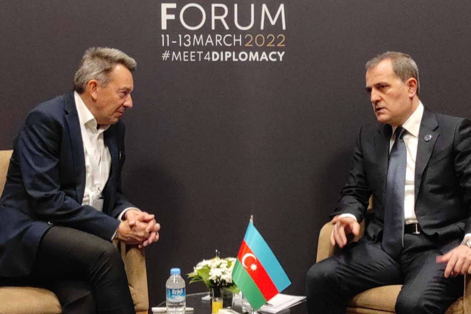 Bu gün Antalya Diplomatiya Forumunda iştirakı çərçivəsində nazir Ceyhun Bayramov Beynəlxalq Qırmızı Xaç Komitəsinin prezidenti Peter Maurer ilə görüşüb.