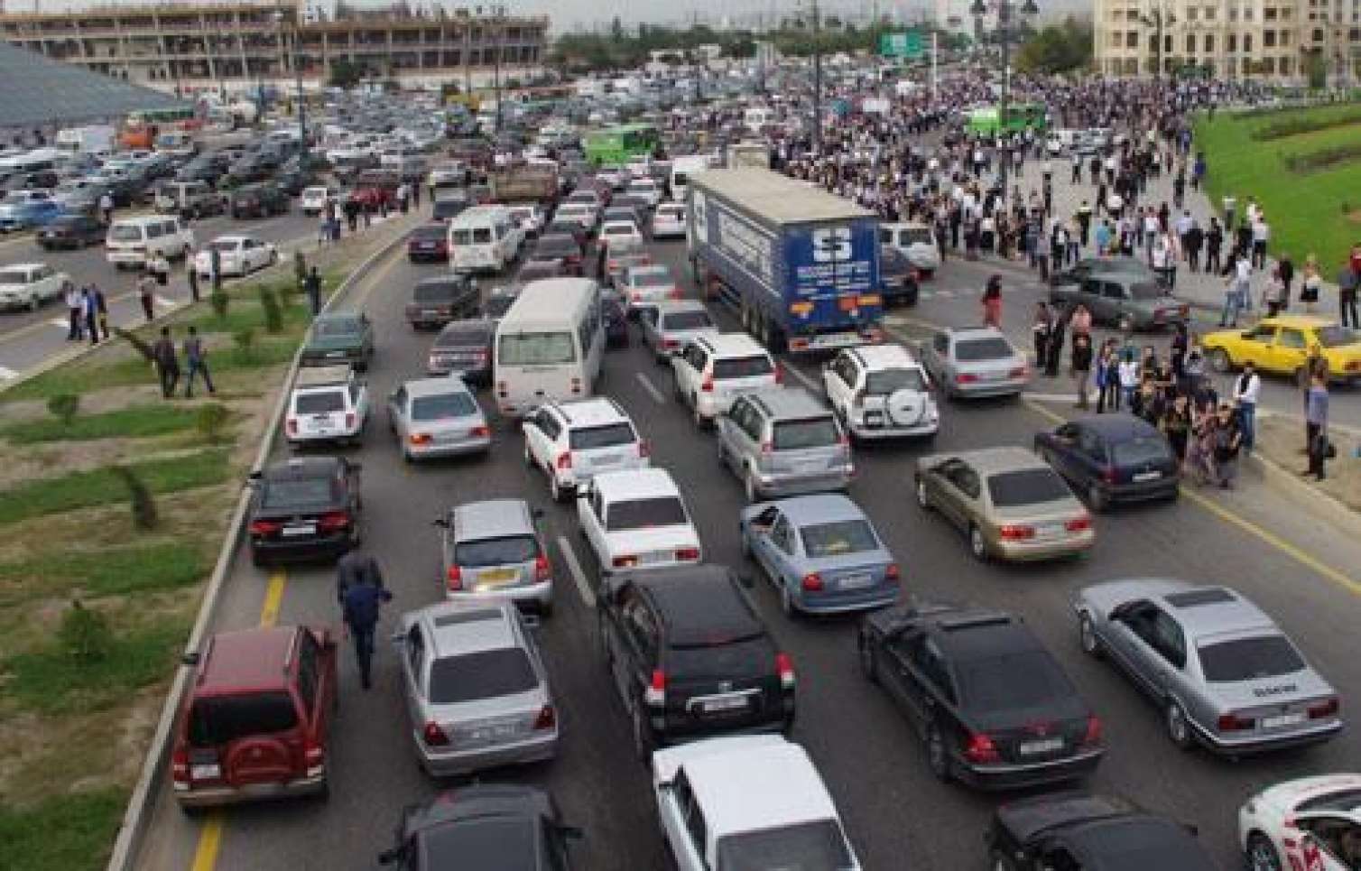 8. Binəqədi şosesi, "Azadlıq prospekti" metro stansiyasından Binəqədi qəsəbəsi istiqamətində sıxlıq müşahidə olunur.