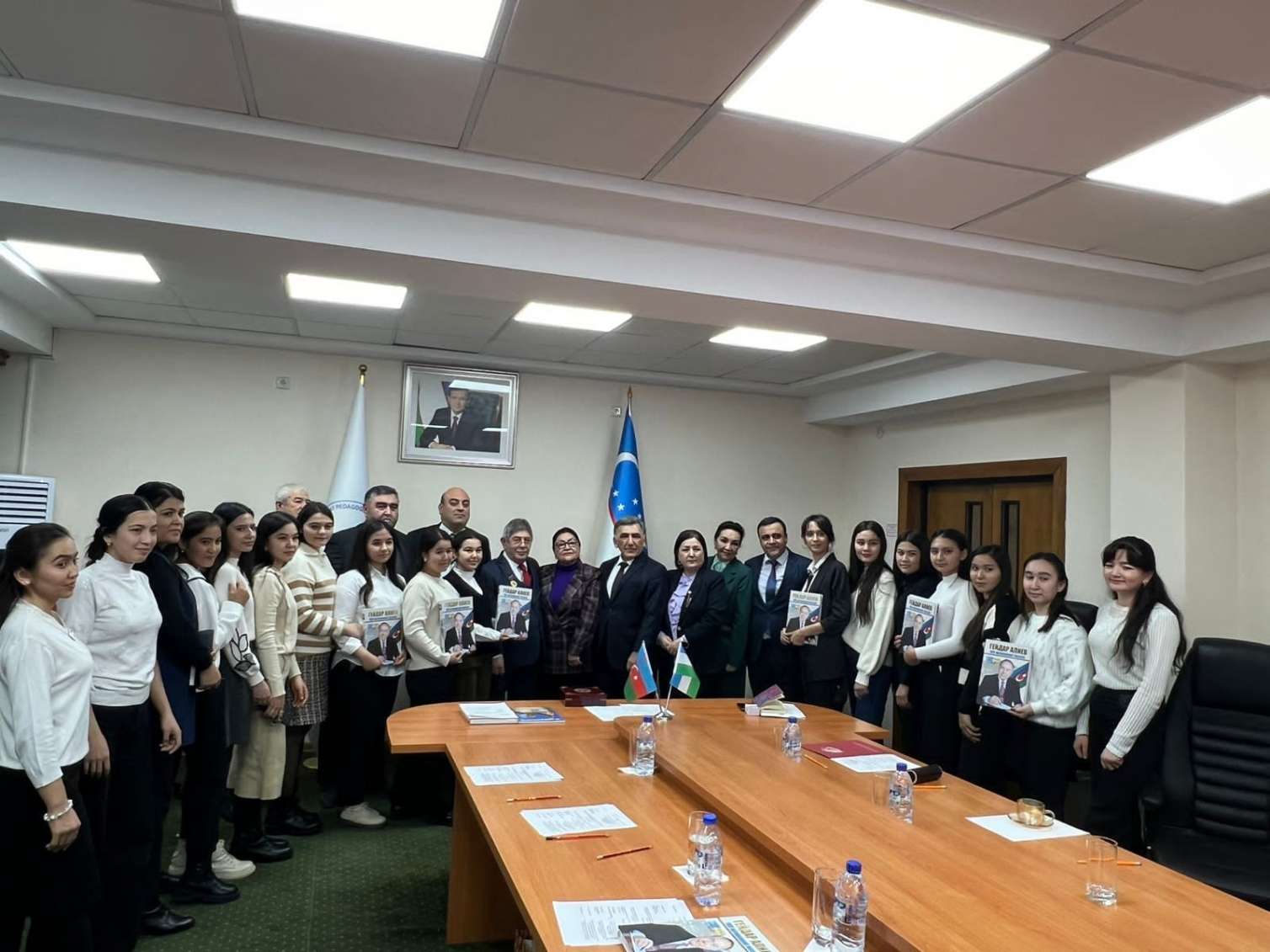 Əvvəlcə təqdimat mərasiminin moderatoru Nizami Gəncəvi adına Daşkənd Dövlət Pedaqoji Universitetinin professoru, Özbəkistan-Azərbaycan Dostluq Cəmiyyətinin icraçı direktoru Erkin Nuriddinov tədbir iştirakçılarını salamlamış və çıxış üçün sözü Nizami adına Daşkənd Dövlət Universitetinin rektoru professor Abduqaffar Qırğızbayevə verib. Rektor professor Abduqaffar Qırğızbayev iki ölkə arasında dostluq və əməkdaşlığın günü-gündən inkişaf etdiyini, möhkəmləndiyini, Özbəkistan dövlət rəhbərliyinin Azərbaycanla sıx əlaqələrin qurulmasına xüsusi diqqət yetirdiyini qeyd edib. O, rəhbərlik etdiyi təhsil ocağının fəaliyyəti haqqında danışaraq, 25 minə yaxın tələbənin oxuduğu Nizami adına Daşkənd Dövlət Pedaqoji Universitetinin Özbəkistanda müqəddəs bir missiyanı həyata keçirdiyini, pedaqoji kadrlar hazırlayaraq ölkənin tərəqqisinə töhvə verdiyini söyləyib. Professor Abduqaffor Qırğızbayev Heydər Əliyev şəxsiyyətinin böyüklüyündən söz açıb, onun təkcə Azərbaycan üçün deyil, Özbəkistan üçün də çox böyük və dəyərli şəxsiyyət olduğunu bildirib. Abduqaffor Qırğızbayev Heydər Əliyevin Sovetlər dönəmində özbək xalqına qarşı həyata keçirilən Pambıq işi və başqa faciə və təxribatların qarşısının alınmasında fədakarlığını xatırladıb.