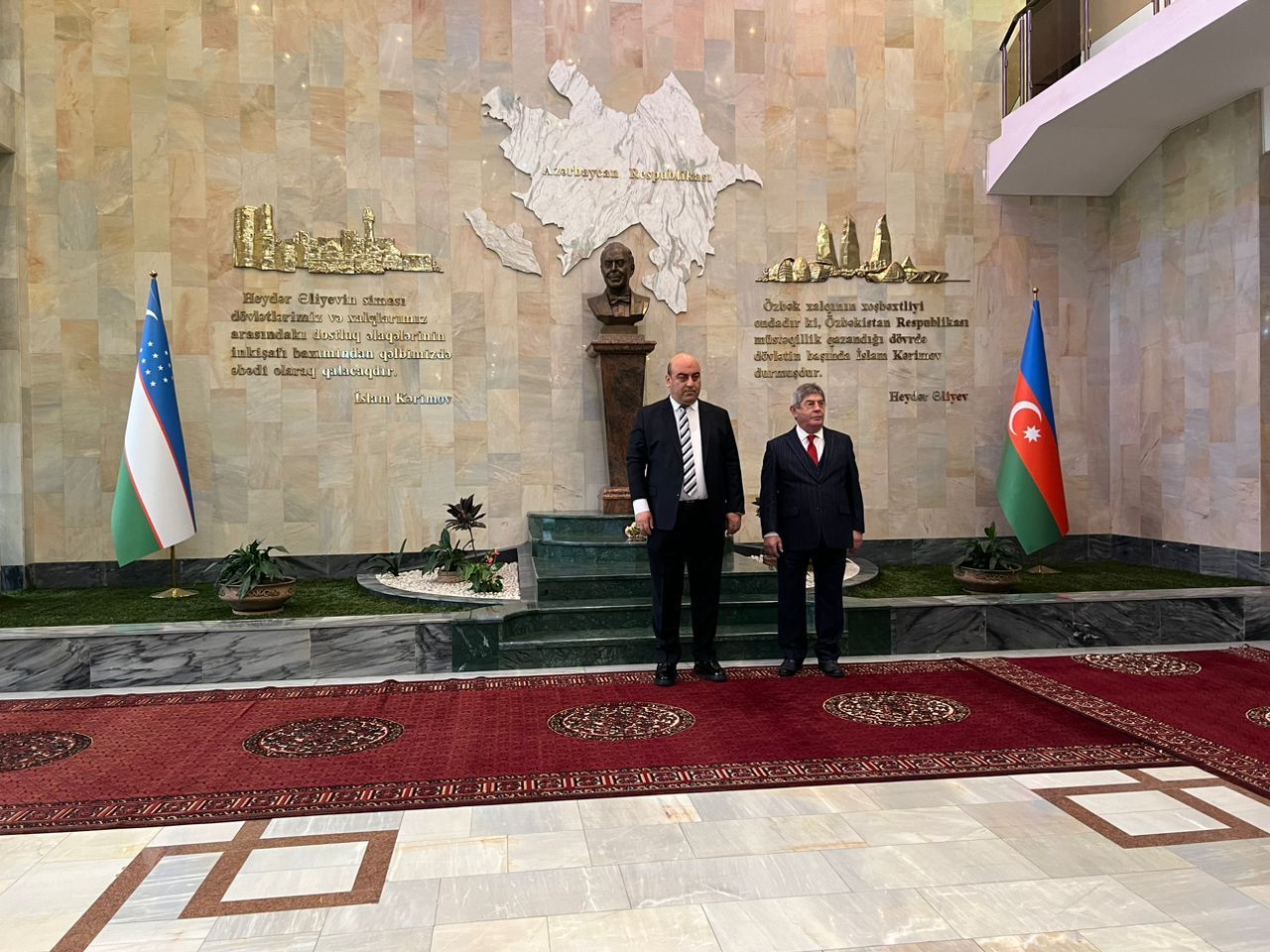 Bakupost.az xəbər verir ki, əvvəlcə Azərbaycan Respublikasının Özbəkistan Respublikasındakı Fövqəladə və Səlahiyyətli səfiri Hüseyn Quliyevin başçılığı ilə səfirliyin əməkdaşları, “Heydər Əliyevin həyatının 100 anı” kitabının müəllifi, “Azərbaycanım” beynəlxalq jurnalının baş redaktoru, Beynəlxalq Elmlər Akademiyasının müxbir üzvü Emil Nəsirli və digər qonaqlar Ulu Öndər Heydər Əliyevin səfirlikdəki büstü önünə gül və çiçək dəstələri qoyublar.