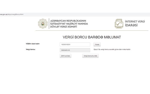 Belə ki, şirkətin 1600019501 nömrəli VÖİN-i üzrə sorğu verən zaman “Kaspi Yıldız”ın 9 666 469.63 AZN borcu olduğu üzə çıxır.