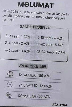 Bir günə 12 saatlıq - 80 manat (köhnə tarif 30 manat);