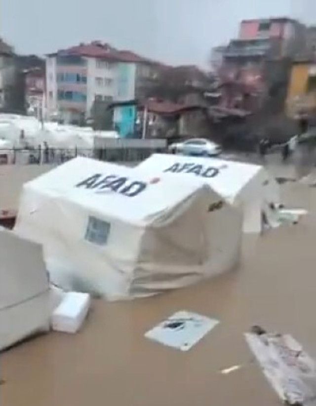 Güclü yağış və sel səbəbindən Malatyada zəlzələ qurbanlarının yaşadıqları çadırlar da suyun altında qalıb. Onlar bələdiyyə qrupları tərəfindən təxliyə edilib. Küçələri su basdığından nəqliyyatın hərəkətində fasilələr yaranıb.
