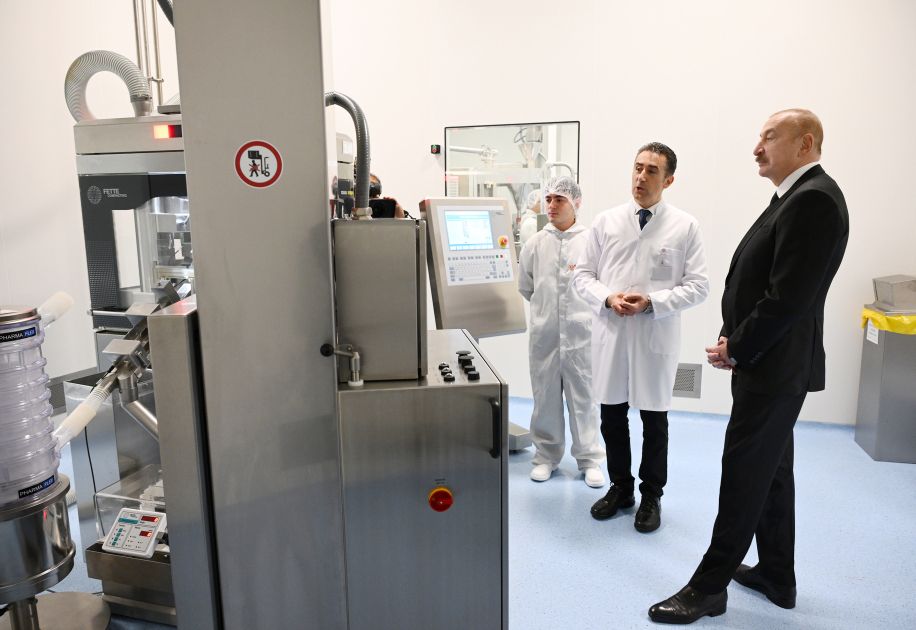 Azərbaycan Prezidenti İlham Əliyev Abşeron rayonunun Hökməli qəsəbəsində “Scandens Pharmaceutical Industries Ltd” MMC-nin dərman preparatları istehsalı müəssisəsinin açılışında iştirak edib.