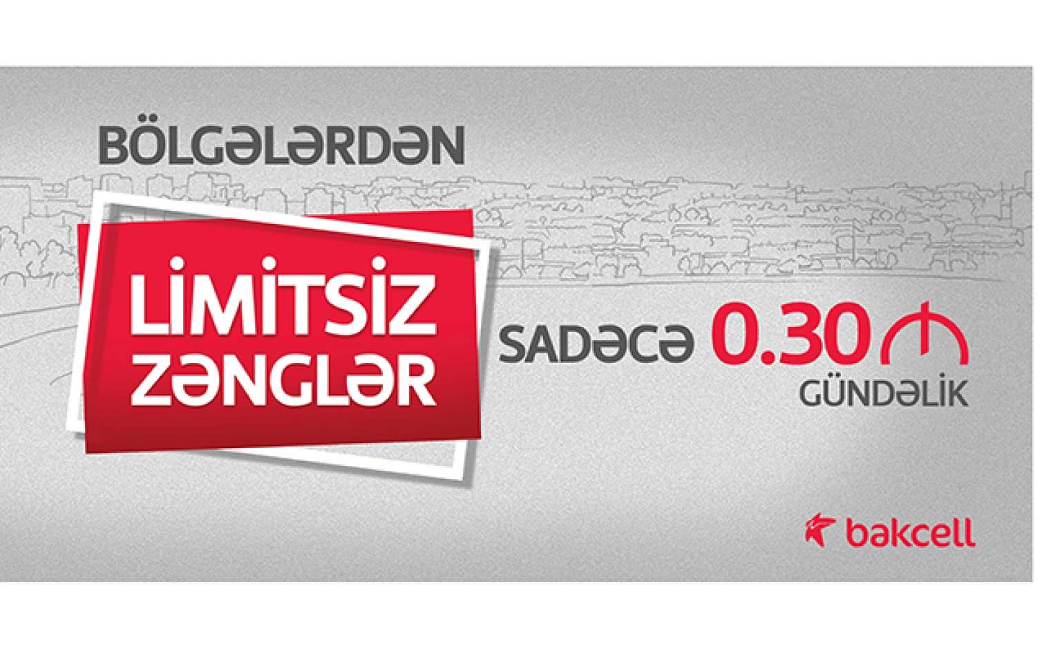 Yeni təklifin şərtlərinə əsasən, "Bakcell”in CİN abunəçiləri öz telefonlarında *545#Yes kodunu yığıb paketi aktivləşdirə və günə sadəcə 0.30 AZN ödəyərək regionlardan 24 saat ərzində limitsiz zəng edə bilərlər.