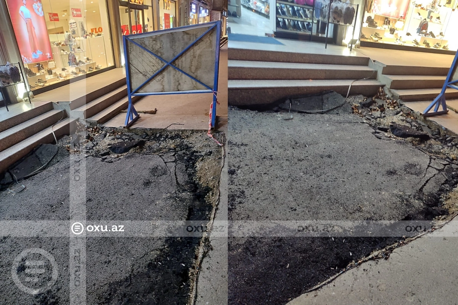 Paytaxtın Xətai rayonu Məhəmməd Hadi küçəsindəki səkidə asfalt qatı çöküb.