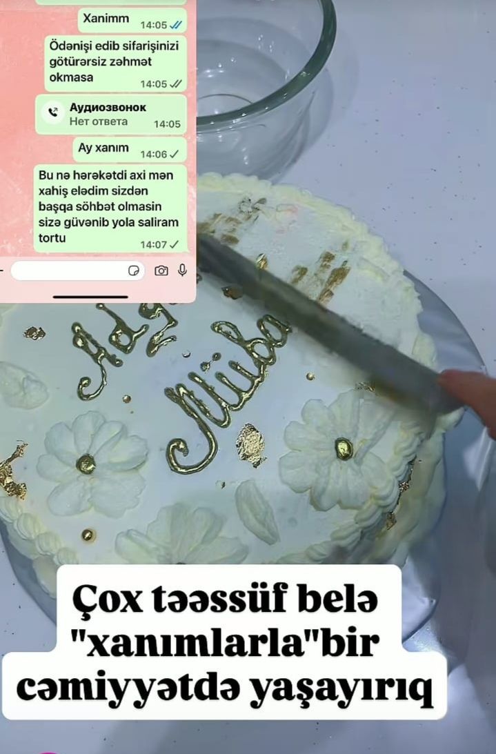“Çox təəssüf, bu dəfə Sumqayıtda işləyən “həkim” xanım bu hərəkəti etdi. Tortu mümkün qədər tez istədi. Pulun nağd olduğunu və ilkin ödəniş edə bilməyəcəyini dedi. Güvəndim, hazırladım. Tortu istədiyi ünvana çatandan sonra “məndə 200 manatlıqdır, siz pulun qaliğını bu koda göndərin, sonra tortu götürərəm” dedi. "Bizdə xırda var" deyəndə isə nömrələrimizi bloka atdı. Artıq o koddan məlum oldu ki, xanım nə işlə məşğuldur. Ayıb olsun, qarşısındakının əziyyətini heçə sayanlara”, - deyə zərərçəkənlərdən biri qeyd edib.