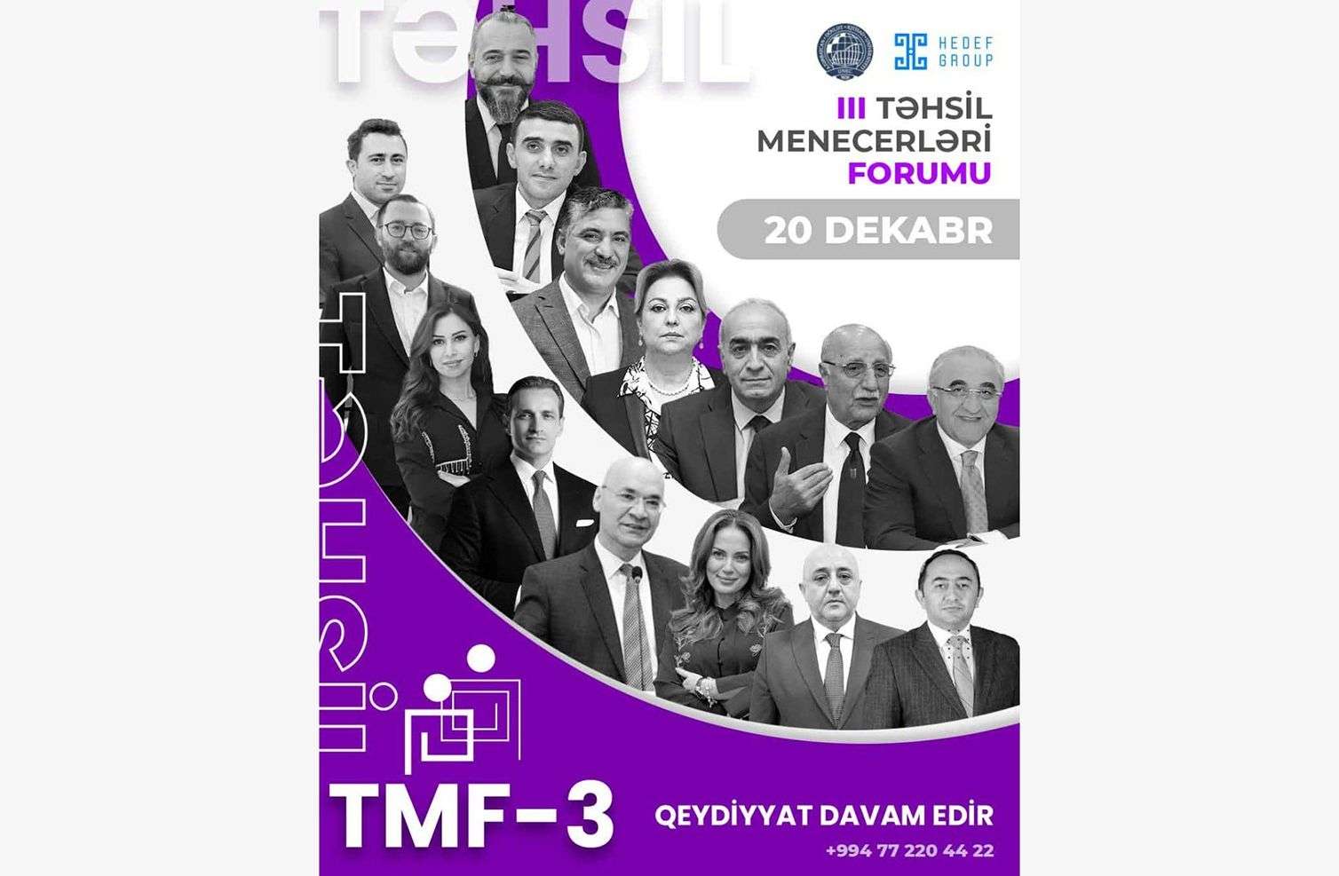 Dekabrın 20-də Azərbaycan Dövlət İqtisad Universiteti və Hədəf Şirkətlər Qrupunun təşkilatçılığı ilə Bakıda III Təhsil Menecerləri Forumu keçiriləcək.