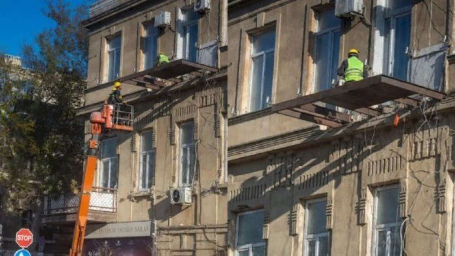 Bakının mərkəzində - Şəmsi Bədəlbəyli küçəsində tarixi arxitektur binaya əlavə eyvan quraşdırıldığı iddia olunur.