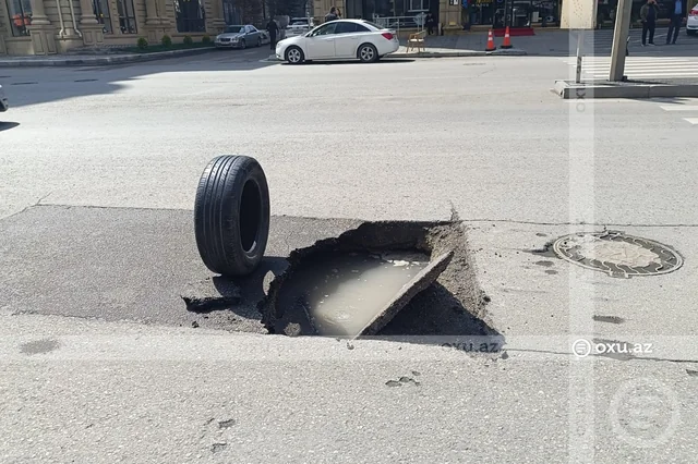 Paytaxtın Cəlil Məmmədquluzadə küçəsi ilə Nəsib bəy Yusifbəyli küçəsinin kəsişməsində yolda çökmə baş verib.