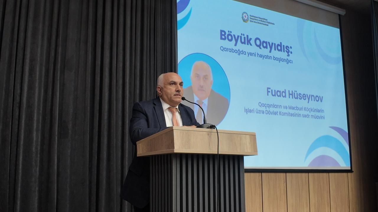 Dövlət Komitəsi sədrinin müavini həmçinin qeyd edib ki, Prezident İlham Əliyevin rəhbərliyi ilə gerçəkləşən Böyük Qayıdışın əsas məqsədləri Qarabağda və Şərqi Zəngəzurda dayanıqlı məskunlaşmanın, iqtisadi fəaliyyətə reinteqrasiyanın təmin edilməsidir. Böyük Qayıdışın təşkilinin, yalnız bir insanın və ya ailənin öz torpağına qayıtması deyil, bütövlükdə Azərbaycanın gələcəyi üçün çox mühüm bir addım olduğunu vurğulayan Fuad Hüseynov bu prosesin hər bir mərhələsinin, ölkənin sosial və iqtisadi inkişafını sürətləndirəcəyini, həmçinin Qarabağ və Şərqi Zəngəzurun regionunun inkişafına təkan verəcəyini diqqətə çatdırıb.