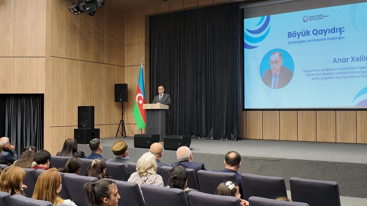 Tədbirdə çıxış edən Qaçqınların və Məcburi Köçkünlərin İşləri üzrə Dövlət Komitəsinin sədr müavini Fuad Hüseynov qaçqınların və məcburi köçkünlərin dövlət qayğısı ilə əhatə olunduğunu, bu kateqoriyadan olan şəxslərin yaşayış şəraitinin yaxşılaşdırılmasına, sosial müdafiəsinin səmərəli təşkilinə Prezident İlham Əliyevin xüsusi diqqət yetirdiyini, Birinci vitse-prezident xanım Mehriban Əliyevanın onların problemlərinin həllinə daim həssaslıqla dəstək göstərdiyini bildirib.