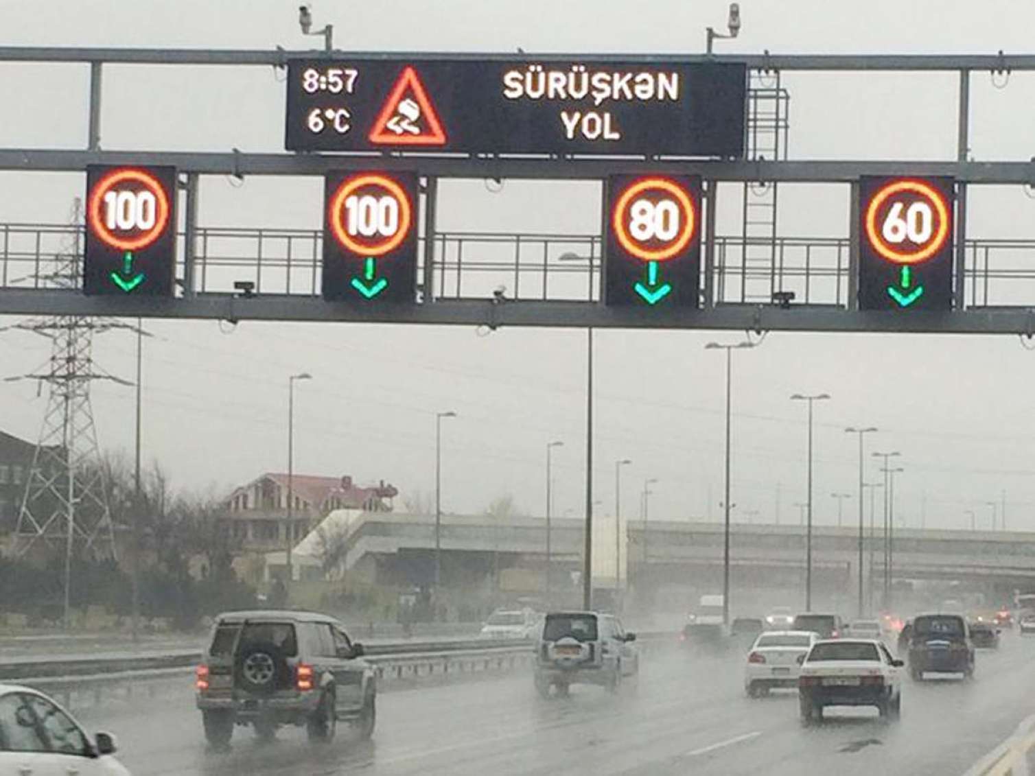 Eyni zamanda bütün tablolarda "sürüşkən yol" işarəsi qoyulub. Sürücülərdən müəyyən olunan sürət həddinə əməl etmələri xahiş edilir.