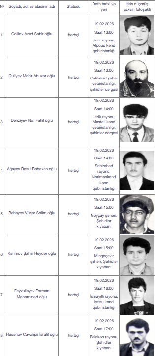 İtkin-şəhidlərin bir qismi fevralın 19-da, digər qismi isə fevralın 20-də dəfn olunacaq.