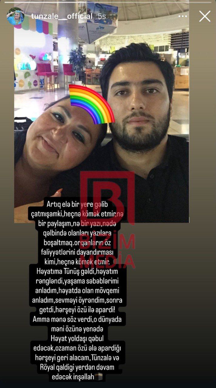 Mərhum Əməkdar artist Tünzalə Əliyevanın həyat yoldaşı Röyal onunla bağlı paylaşım edib.