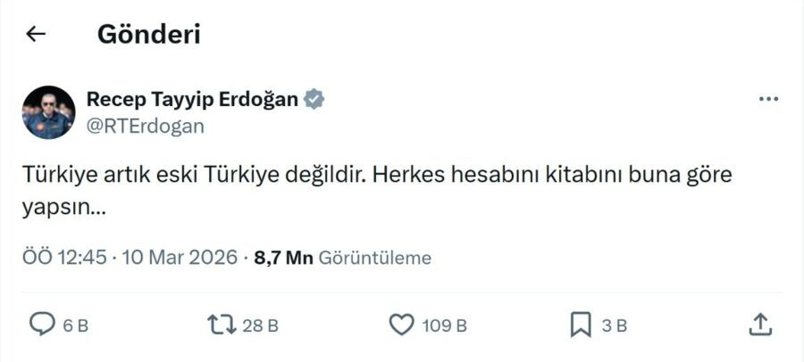 Bakupost.az Globalinfo.az-ya istinadən xəbər verir ki, o, paylaşımda “Türkiyə artıq əvvəlki Türkiyə deyil, hər kəs hesab-kitabını buna görə etsin” yazıb.
