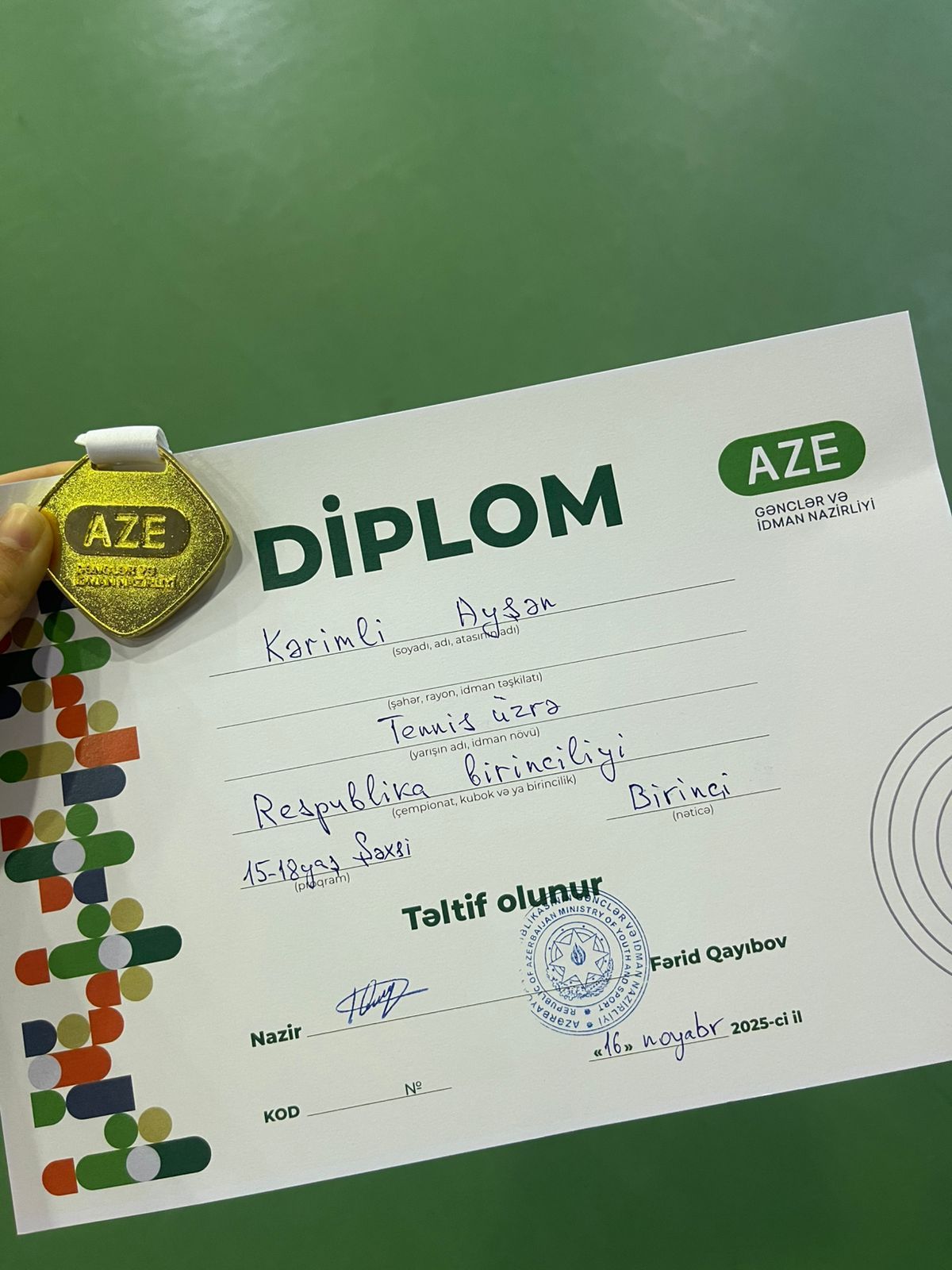 Əli Kərimov bildirib ki, Ayşən 14 yaşı olmasına baxmayaraq, 12–16 noyabr 2025-ci ildə keçirilən Respublika birinciliyində 18 yaş kateqoriyasında qalib olub: