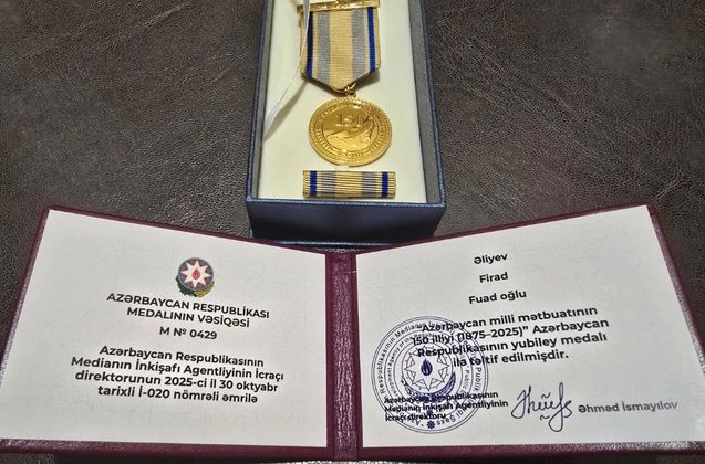 Bakupost.az Musavat.com-a istinadla xəbər verir ki, o, "Azərbaycan milli mətbuatının 150 illiyi (1875-2025)" Azərbaycan Respublikasının yubiley medalı ilə mükafatlandırılıb.