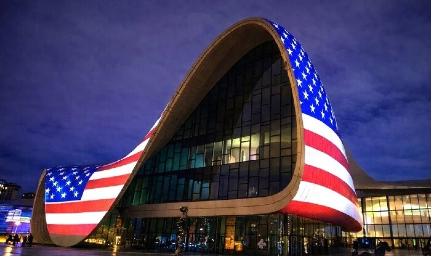 Ötən gecə Heydər Əliyev Mərkəzi ABŞ bayrağı ilə işıqlandırılıb.