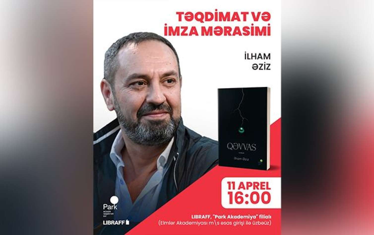 Bakupost.az xəbər verir ki, həm təqdimat, həm də imza mərasimi aprelin 11-də saat 16:00-da LIBRAFF mağazalar şəbəkəsinin “Park Akademiya” filialında baş tutacaq.