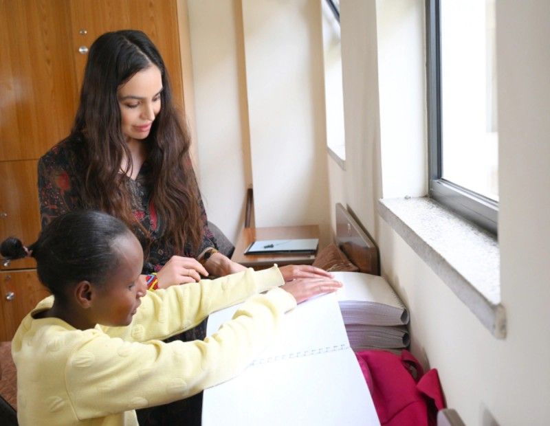 Efiopiyanın birinci xanımı Zinaş Tayaçevin təşəbbüsü və himayəsi ilə inşa olunan məktəb ölkənin bütün bölgələrindən seçilmiş 9-cu sinifdən 12-ci sinfə qədər gözdən əlilliyi olan və görmə məhdudiyyətli 300-dən çox şagirdə xidmət göstərir. Məktəb milli tədris proqramını şagirdlərinin ehtiyaclarına uyğunlaşdıraraq Brayl əlifbasından, audioresurslar və kompüter ekran oxuyucusu texnologiyasından istifadə edir. Əsas akademik fənlərlə yanaşı, şagirdlər Brayl əlifbasını, orientasiya və hərəkətlilik, həyat bacarıqları və musiqi, əl işləri, kompüter istifadəsi üzrə təlimlər keçirlər. Akademik öyrənməni praktiki bacarıqlarla birləşdirərək, Berhan Gözdən Əlillər üçün İnternat Məktəbi şagirdləri ali təhsildə uğur qazanmağa və cəmiyyətdə müstəqil, məhsuldar həyata hazırlaşmağa imkan verir.