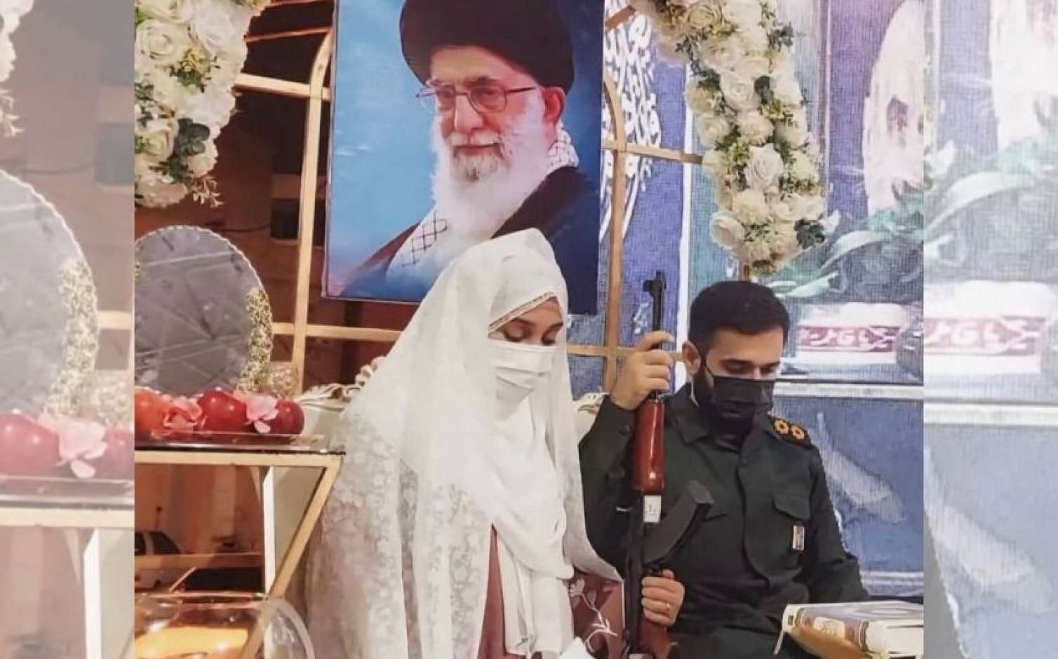 İranda keçirilən qeyri-adi toy mərasimi sosial şəbəkələrdə diqqət çəkib. Belə ki, cütlük mərasim zamanı maska taxıb, bəyin əlində isə avtomat silah olub.