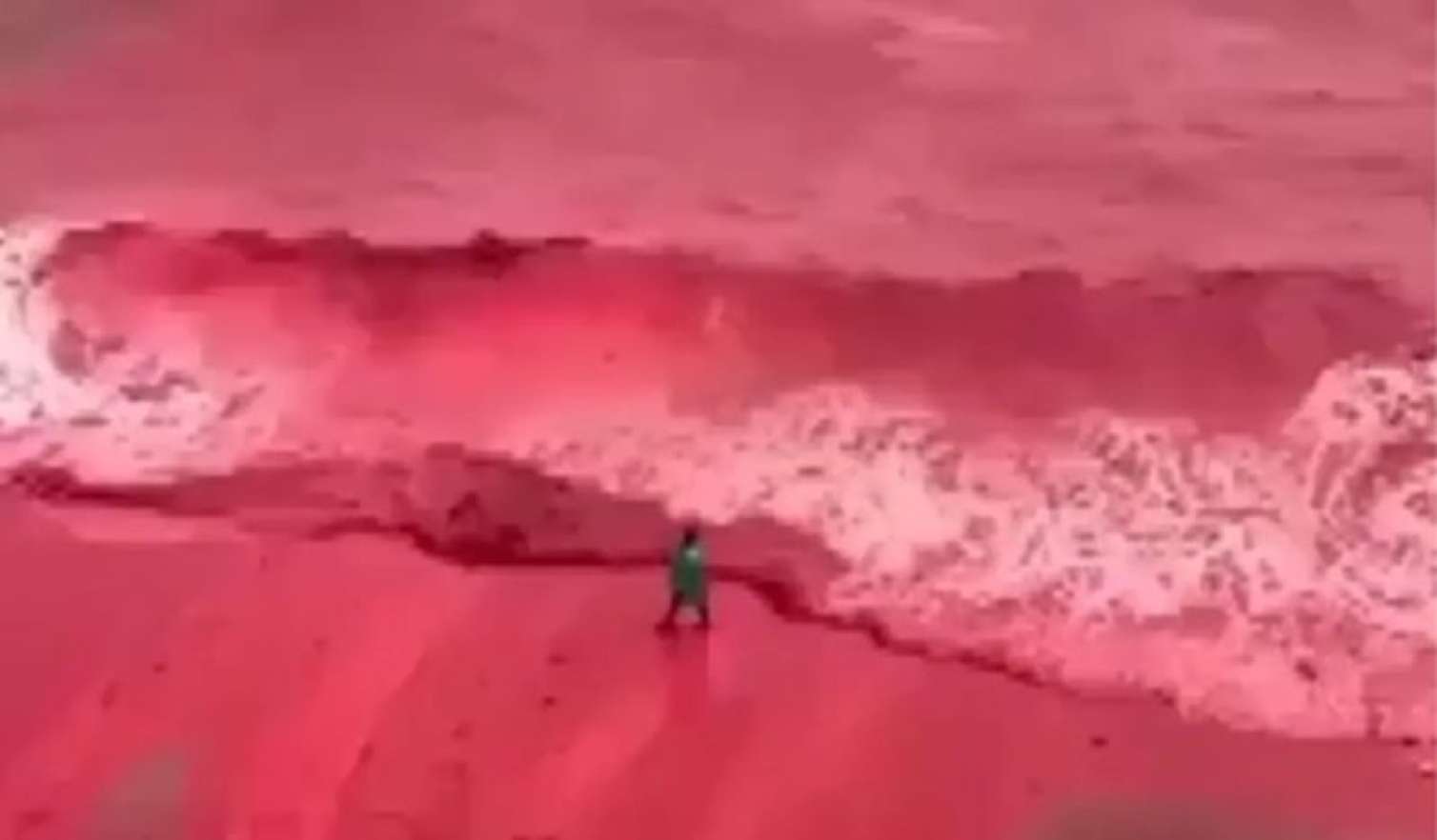 Yağış və sahilə dəyən dalğaların təsiri nəticəsində adanın qırmızı rəng aldığı anlar qısa zamanda sosial şəbəkələrdə diqqətləri üzərinə çəkib.