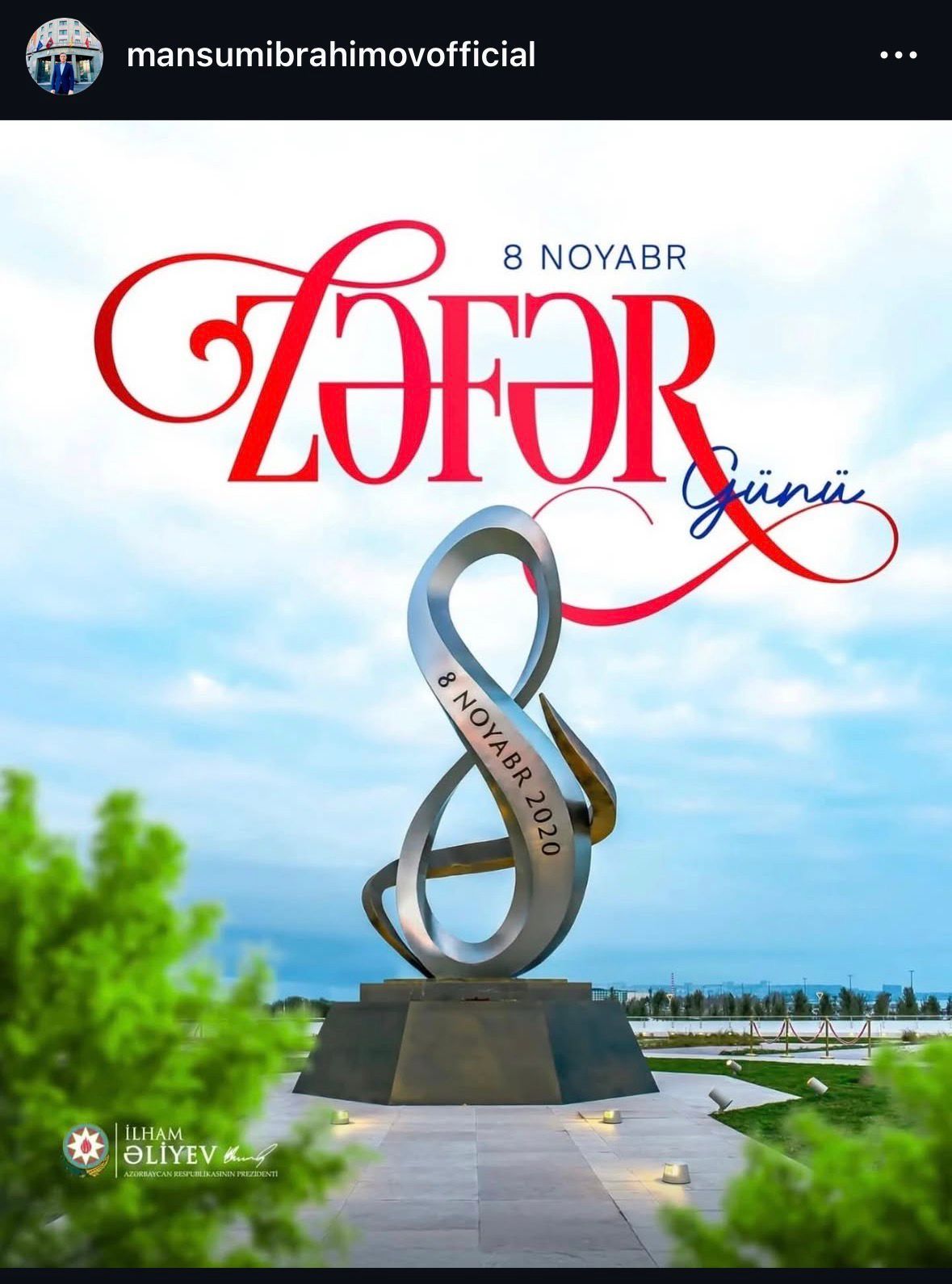 Qeyd edək ki, 8 Noyabr 2020-ci ildə Azərbaycanın ərazi bütövlüyünün bərpası ilə nəticələnən Vətən müharibəsində qazanılan tarixi qələbənin rəmzi olaraq Zəfər Günü kimi qeyd olunur.