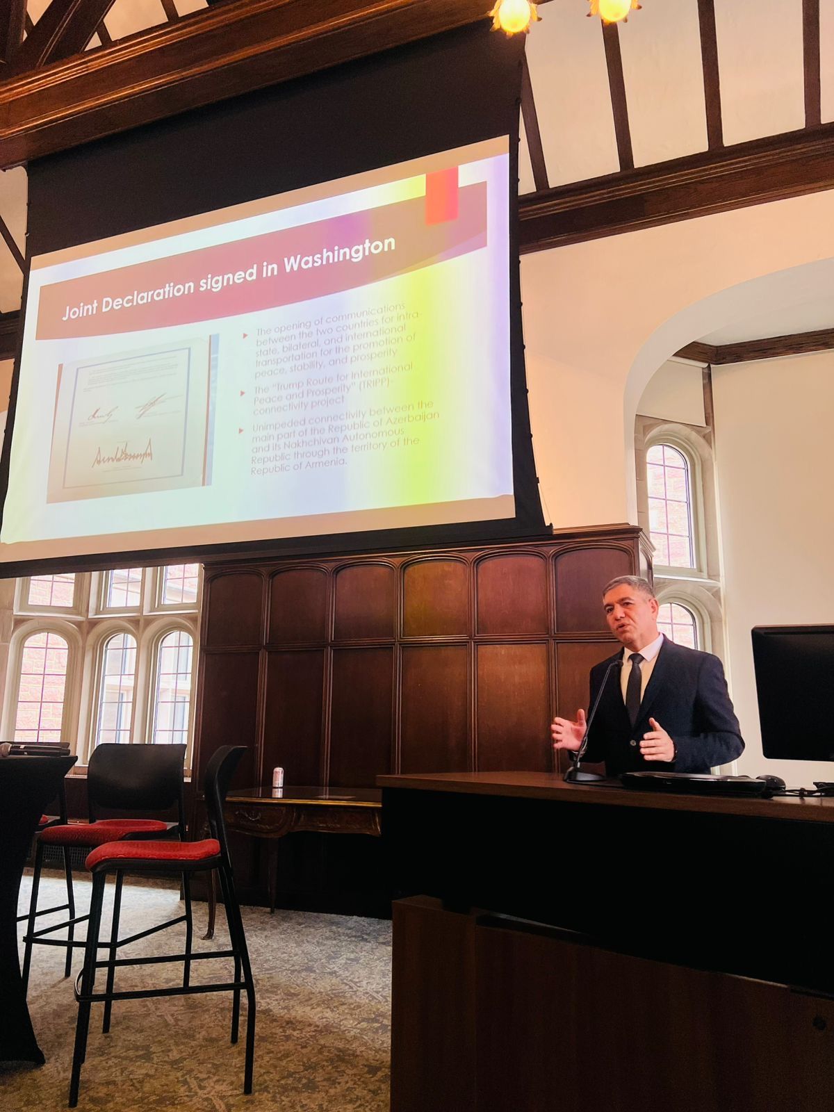 Çıxışım zamanı ABŞ Prezidentinin vasitəçiliyi ilə bu ilin avqust ayında Vaşinqtonda Azərbaycan və Ermənistan rəhbərlərinin sülh anlaşmasını imzalamasından sonra regiondakı yeni düzən barədə məlumat verdim. Azərbaycan sülh gündəliyinə sadiqdir və Qafqazda inkişaf və əməkdaşlığı dəstəkləyir. Azərbaycan Prezidentinin rəhbərliyi ilə həyata keçirilən siyasət regionda təhlükəsizliyin güclənməsi üçün real əsaslar formalaşdırıb.