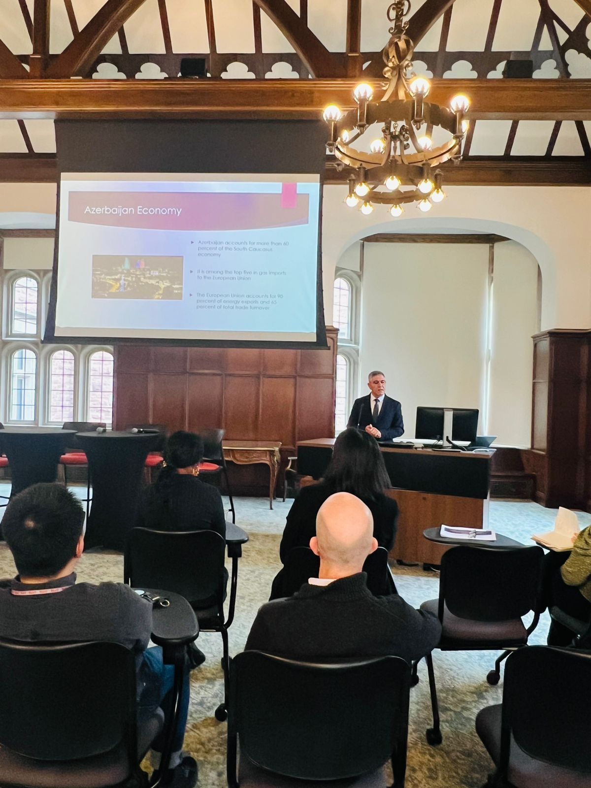 Bakupost.az -a açıqlamasında dəvətlə bağlı bunları deyib: “Amerika Birləşmiş Ştatlarının Seynt Luis şəhərinə səfərimin ikinci günü Vaşinqton Universitetində “Qazaxıstan və Azərbaycanda İnsan İnkişafı İnnovasiyaları üçün Resurslar” adlı mühazirəm təşkil edildi.