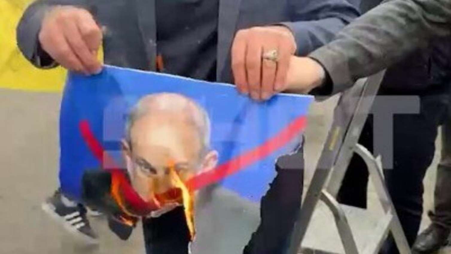 Moskvanın mərkəzində Ermənistan səfirliyinin qarşısında keçirilən mitinqdə Baş nazir Nikol Paşinyanın şəkli yandırılıb.