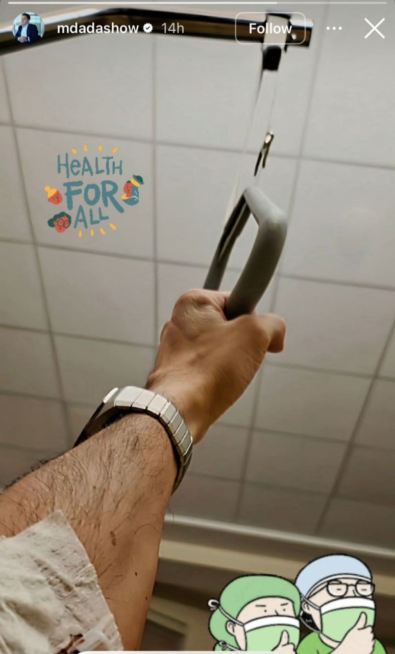 Dadaşov xəstəxanadan fotosunu paylaşıb və hamıya sağlamlıq arzuladığını yazıb.