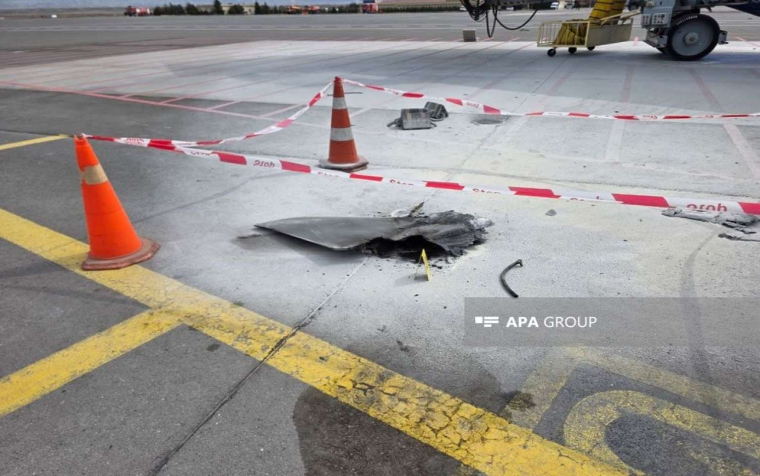 Bakupost.az APA-ya istinadən xəbər verir ki, dronun qalıqları hava limanının uçuş-eniş zolağına düşüb, bir neçə yerdə asfalt örtüyü zədələyib.