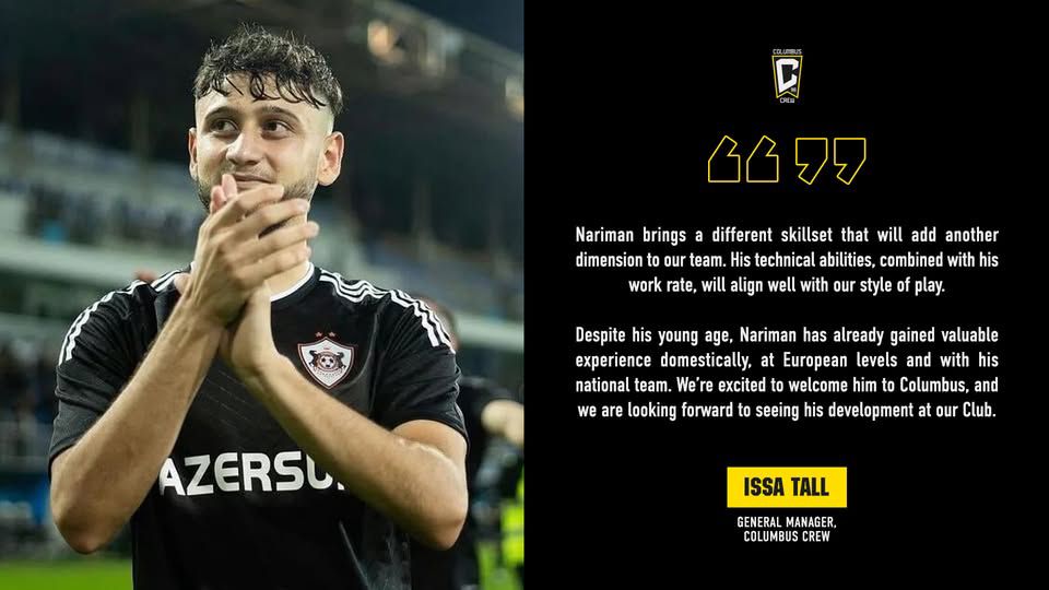 ABŞ klubu rəsmi sosial media hesablarında Azərbaycanlı futbolçunun fanatlarına təqdim edib. “Columbus Crew”un baş meneceri İssa Tall palaşımında, “Nəriman komandamıza əlavə bir ölçü qatacaq fərqli bacarıq dəsti gətirir. Onun texniki keyfiyyətləri və yüksək iş tempi oyun üslubumuza çox uyğundur.