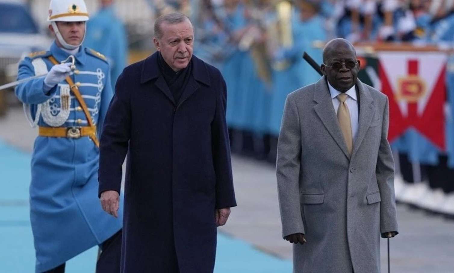 Türkiyədə rəsmi səfərdə olan Nigeriya Prezidenti Bola Tinubu Ankarada Türkiyə Prezidenti Rəcəb Tayyib Ərdoğan ilə keçirilən görüş zamanı xalçaya ilişərək yıxılıb.