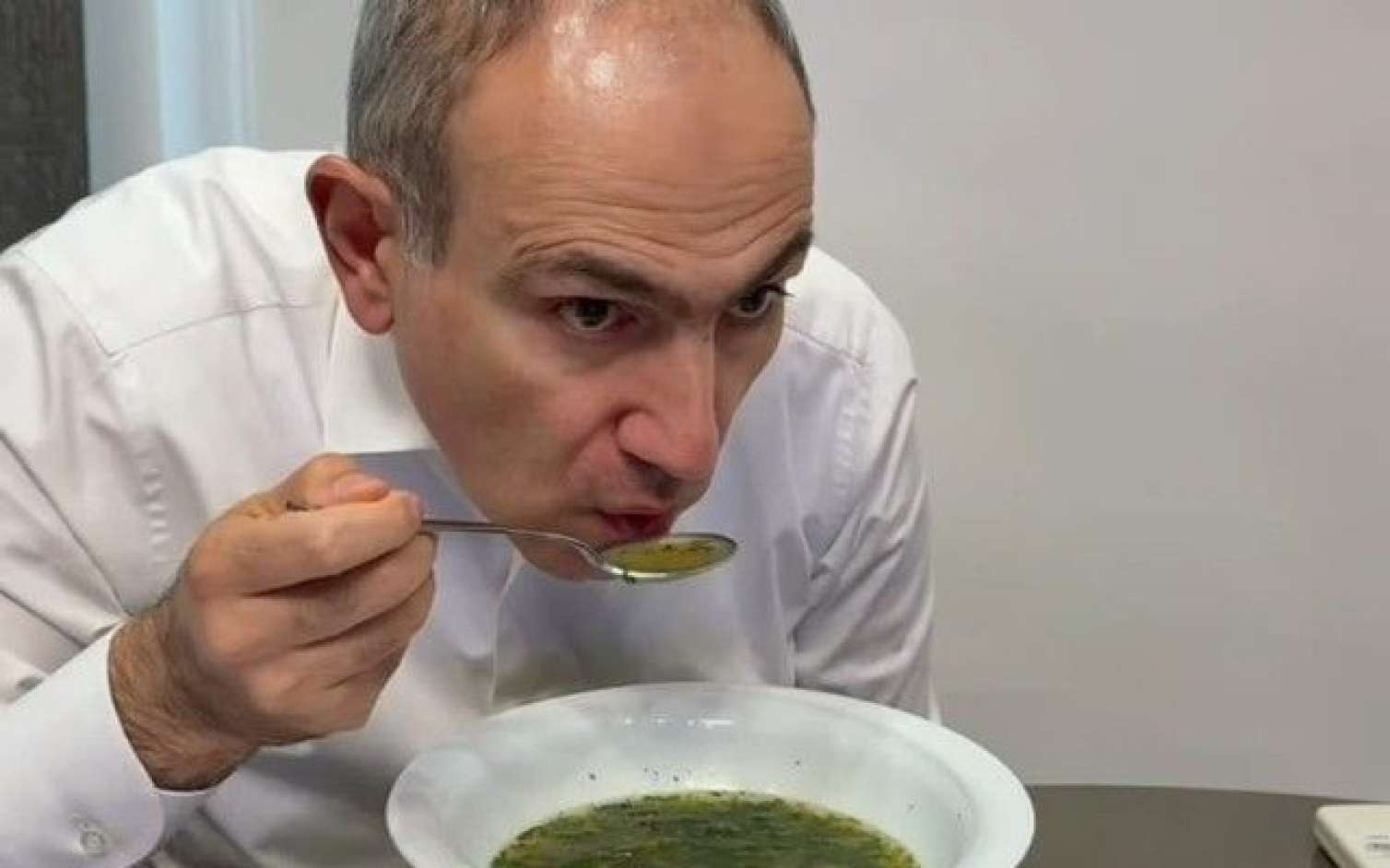 Ermənistanın Baş naziri Nikol Paşinyan gicitkən şorbasından həzz aldığı videonu paylaşıb.