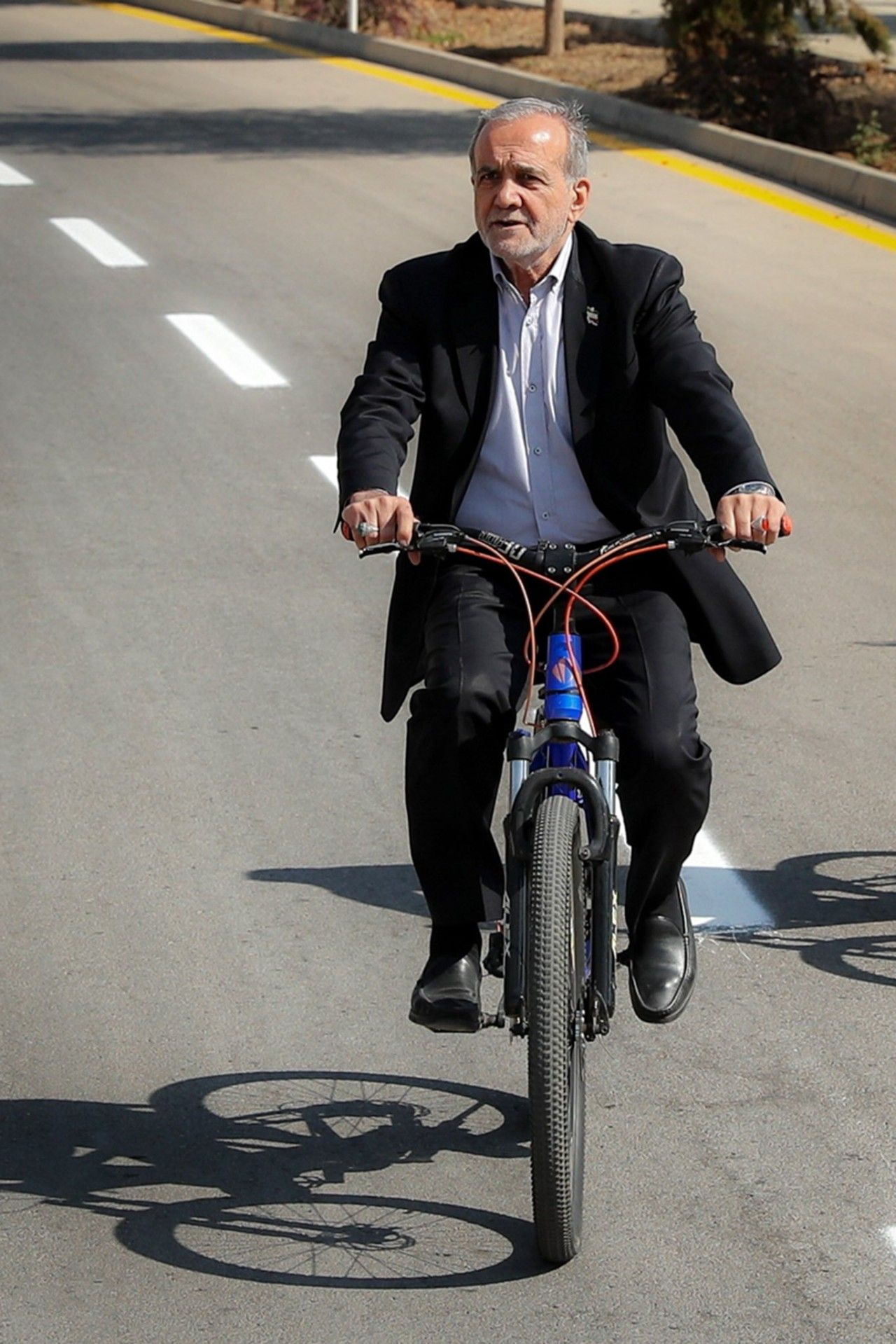 Bakupost.az "Unikal"a istinadən xəbər verir ki, Pezeşkian bir neçə mühafizəçisi və yaxın müşavirləri ilə sadə vətəndaşlarla eyni yolda velosiped sürüb.