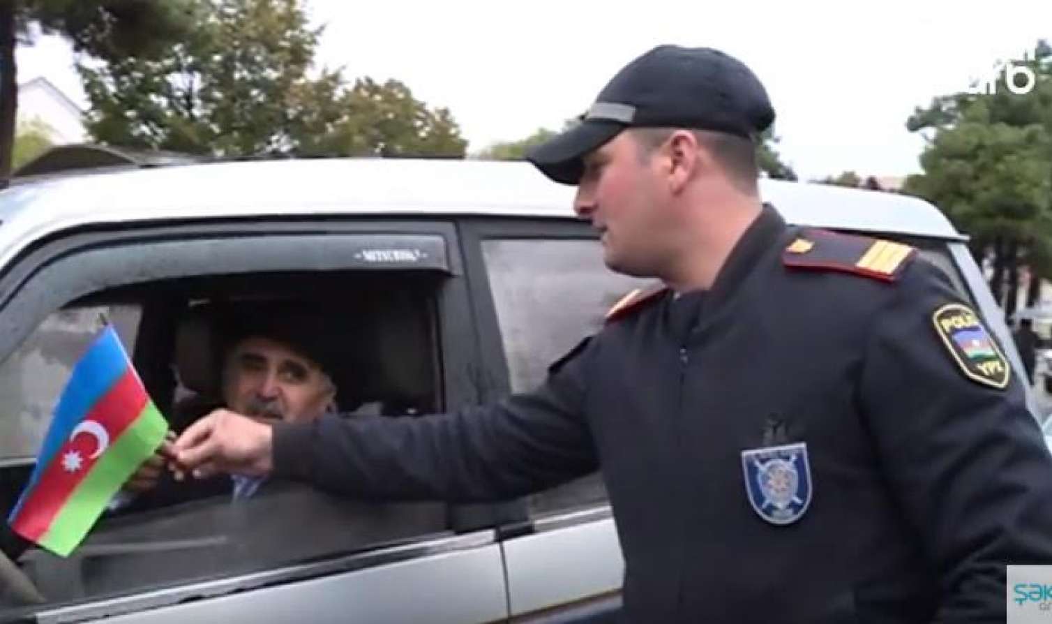 Bu dəfə polis sürücüləri cərimə etmək üçün yox , bayram münasibətilə Azərbaycan respublikasının bayrağını təqdim etmək üçün saxladı.