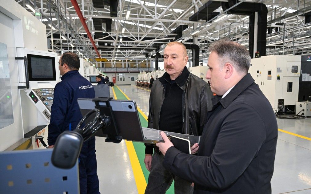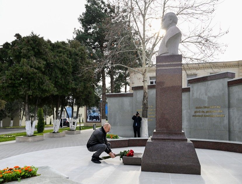 Bakupost.az xəbər verir ki, dövlətimizin başçısı əvvəlcə Ulu Öndər Heydər Əliyevin zavodun həyətində ucaldılmış büstü önünə gül dəstəsi qoydu.