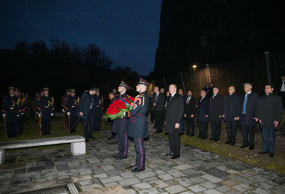Prezident İlham Əliyev və Prezident Peter Pelleqrini abidənin önünə əklil qoyub.