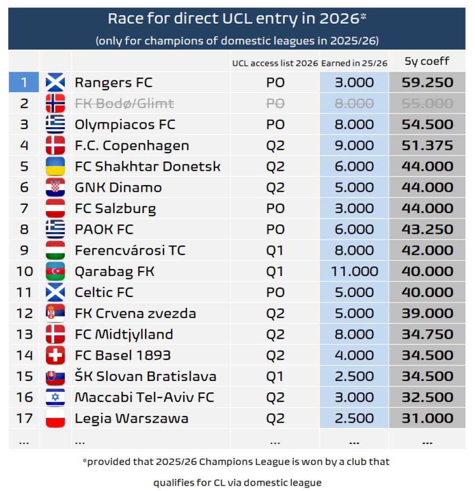 Lakin hər il bu komandalardan biri birbaşa ÇL-na vəsiqə qazana bilər. Onlar ən yüksək reytinqə malik olan olur.