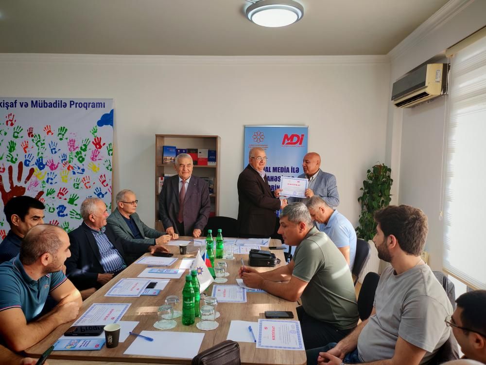 Təlimlərin yekunda iştirakçılara təlimlərdə fəal iştirakalrına görə sertifikatlar təqdim olunub.