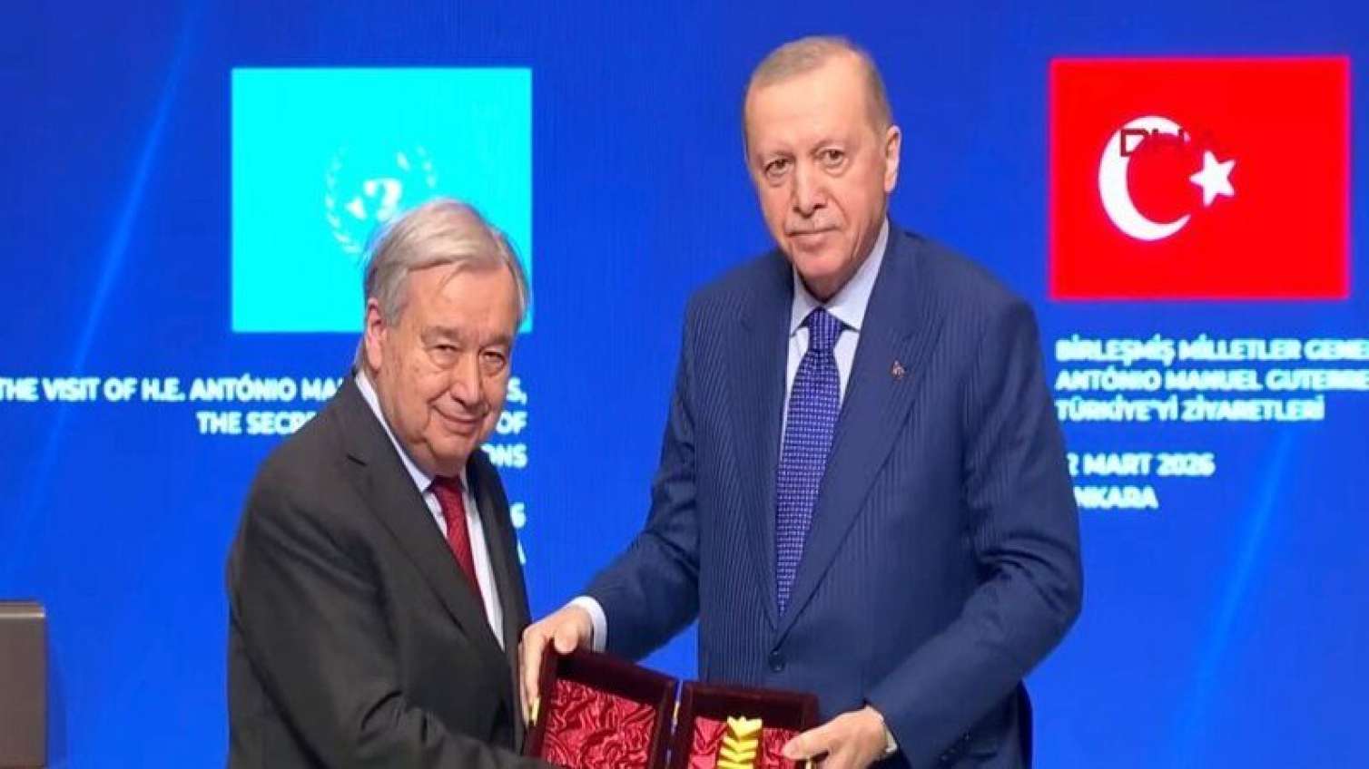 Türkiyə Prezidenti Rəcəb Tayyib Ərdoğan BMT Baş katibi Antonio Quterreşə “Atatürk Beynəlxalq Sülh Mükafatı”nı təqdim edib.