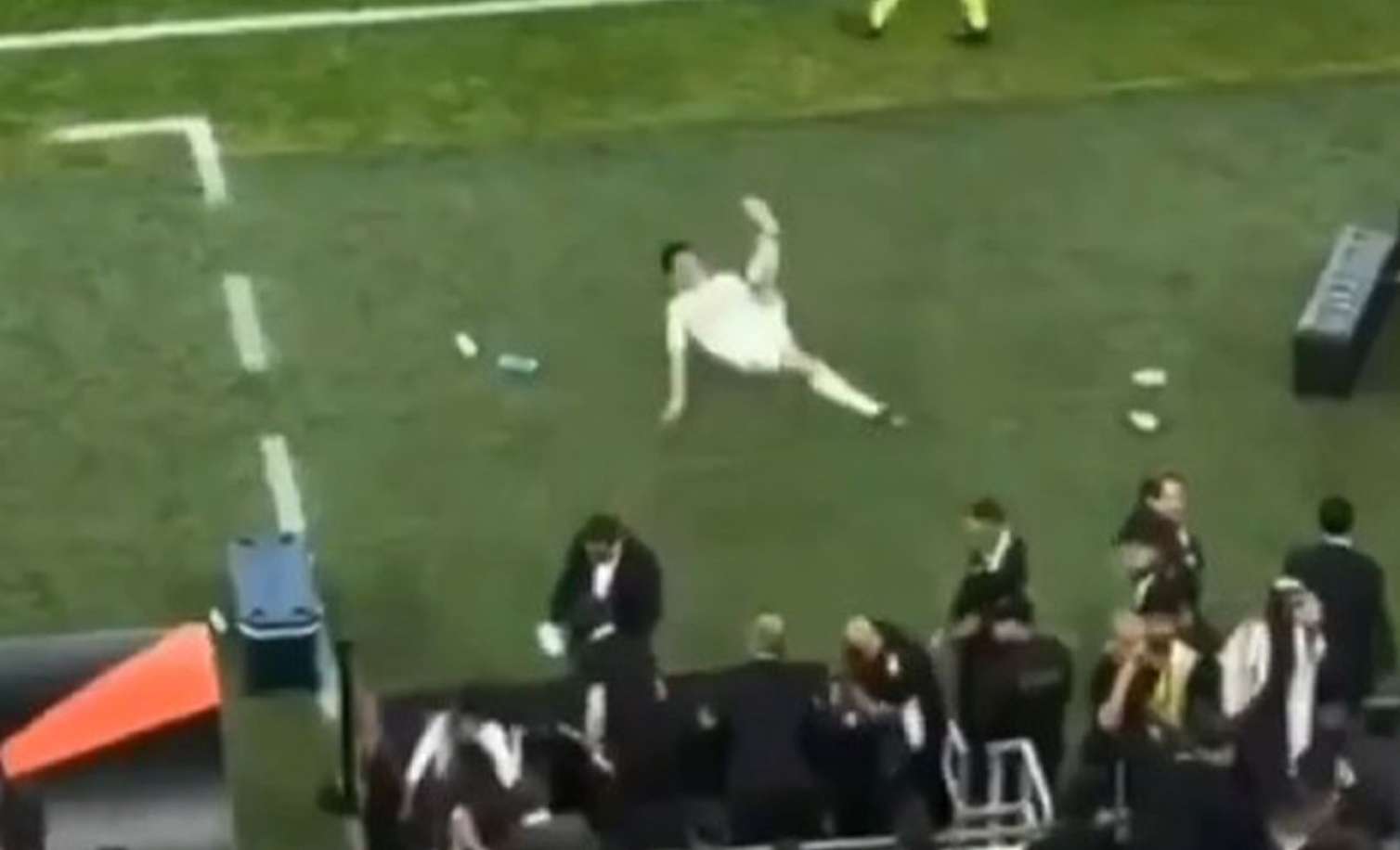 Lakin bu zaman gənc yarımmüdafiəçi yerə yıxılıb.