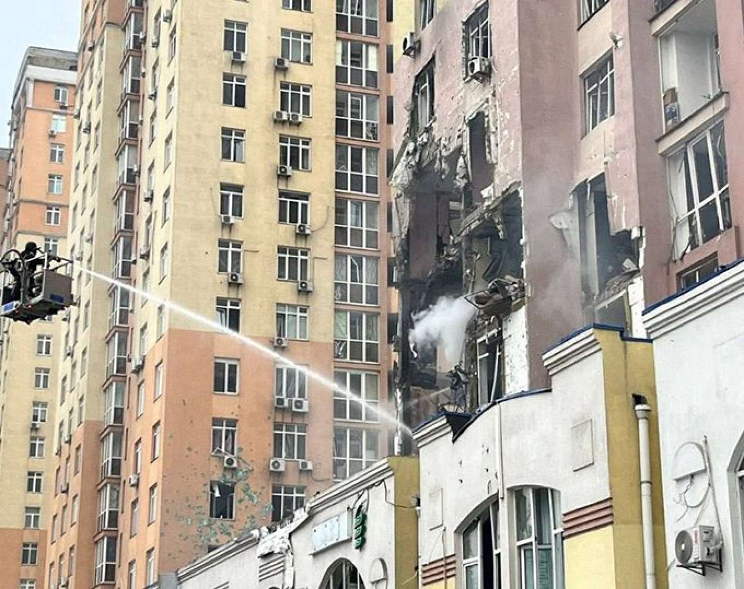 Sosial şəbəkələrdə yayılan fotolardan birində raketin yaşayış binasına dəydiyi an və partlayışın başvermə məqamı əks olunub. Kadrda güclü alov və partlayış dalğası aydın görünür.