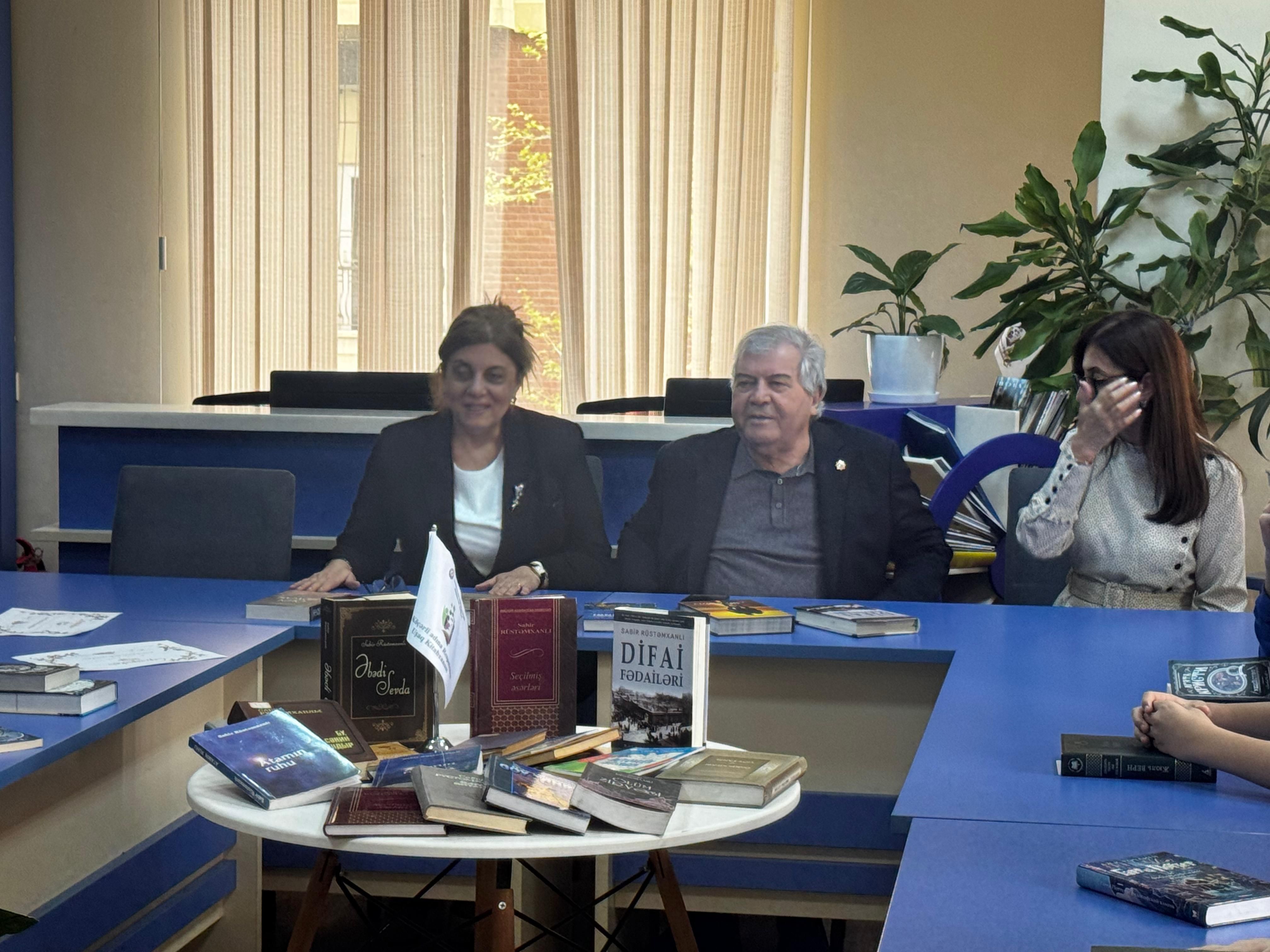 Aprelin 23-də Firudin bəy Köçərli adına Respublika uşaq kitabxanasında XXI Əsr Beynəlxalq Təhsil və İnnovasiya müəssisəsinin şagirdləri ilə Xalq şairi Sabir Rüstəmxanlının görüşü keçirilib.