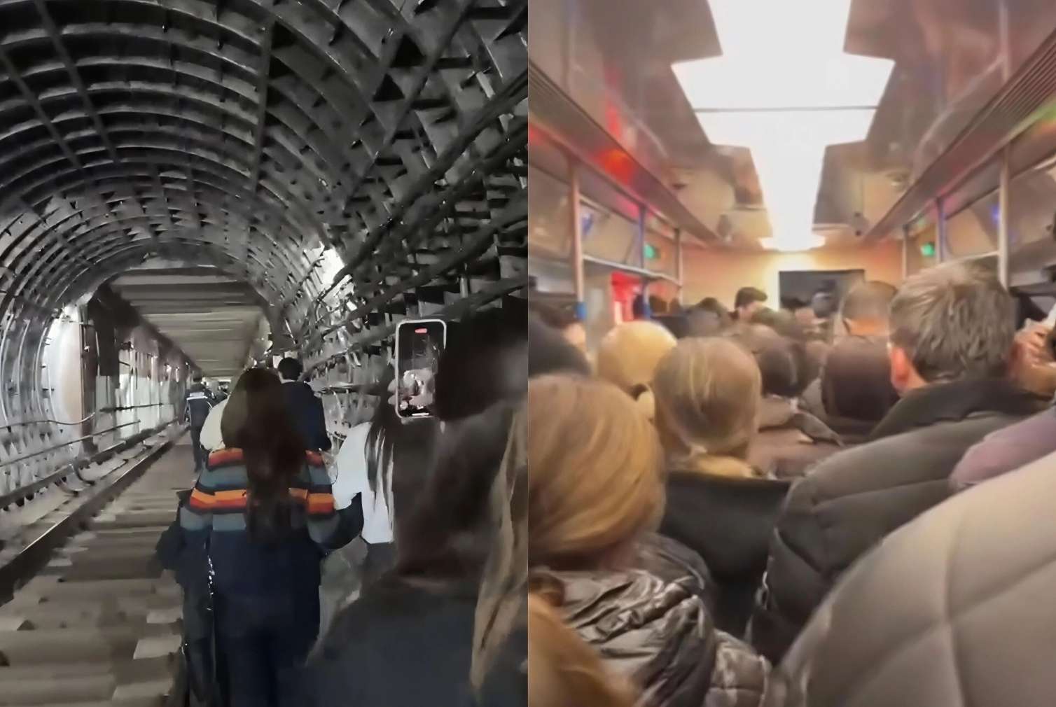 Sərnişinlər metro tunelindən belə təxliyə olundu - VİDEO